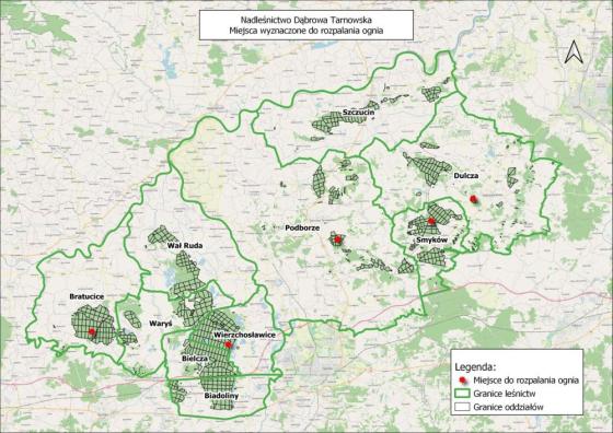Na terenie Nadleśnictwa Dąbrowa Tarnowska znajdziemy miejsca w których bezpiecznie możemy rozpalić ogień (zgodnie z art. 30 pkt 3 Ustawy o lasach).